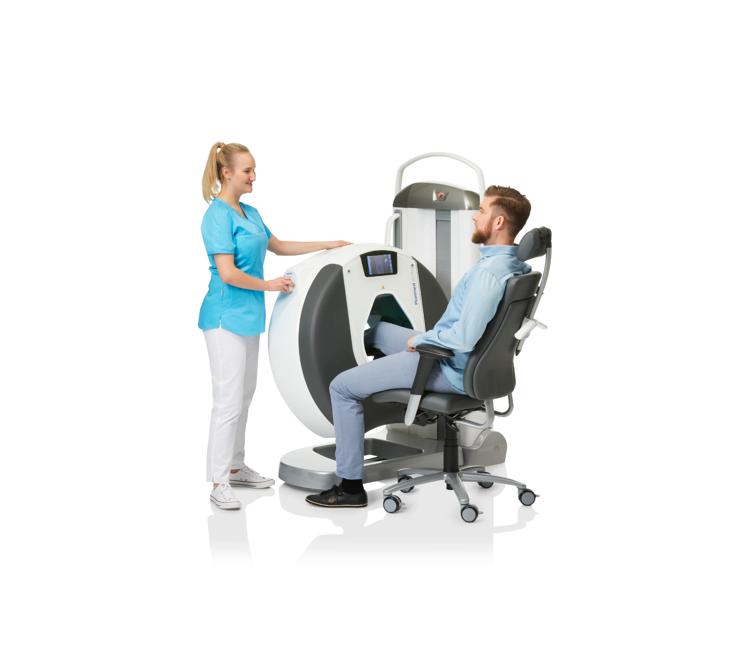 Planmed Verity to samodzielny, kompaktowy i mobilny tomograf 3D z wbudowaną stacją roboczą i ekranem dotykowym. Posiada zmotoryzowane gantry z regulacją wysokości i kąta pochylenia, co zapewnia komfortowe pozycjonowanie pacjenta oraz łatwą instalację i przemieszczanie w różnych oddziałach szpitala.